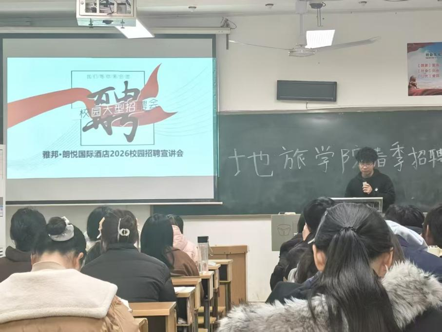 为精准对接行业人才需求,拓宽我院酒店管理、旅游管理专业毕业生就业渠道,搭建校企沟通合作桥梁,3月23日晚,地理科学与旅游学院在湖南文理学院西校区第二实验楼B103教室,顺利举办春季招聘宣讲会。