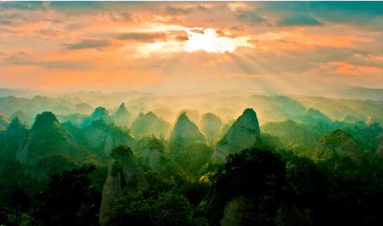 万佛山丹霞地貌区是“世界自然遗产提名地”、“国家自然遗产”,经过数亿年的地质演化,形成了我国乃至世界范围罕见的特大型丹霞地貌群。“万座丹峰拥翠环”,这里融峰、林、洞、水于一体,集雄、险、峻、秀于一身,一步一景,被誉为“绿色万里长城”。