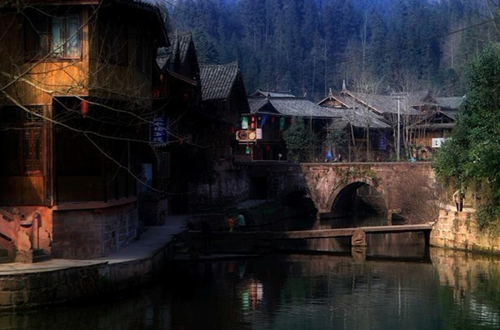 上里镇位于雅安市雨城区北部,雅安为著名的雨城,景区也多雨湿润。冬无严寒,夏无酷暑,年平均气温15度左右。古镇初名“罗绳”,是南方丝绸之路的重要驿站,建筑以明清风格为主。