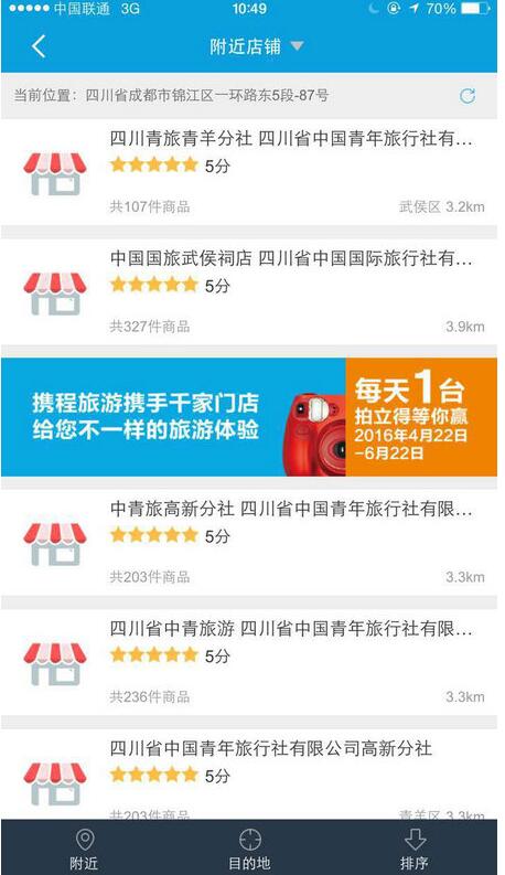 (图片:成都各旅行社门店登陆携程APP,市民可手机查找身边附近旅行社)