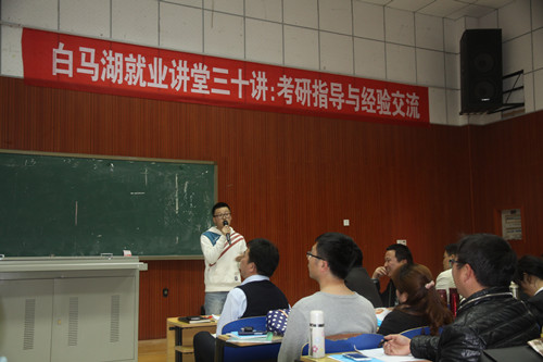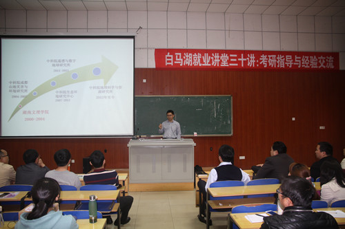 4月21日下午,我校2004届毕业生中科院地理资源所刘宇博士在T3--D-101作“国家项目申请实证分析”的学术报告,并对学弟学妹们进行考研指导。