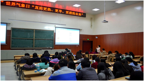 胡振菊台长作了“世界气象日”的专题报告,详细的介绍了世界气象日的由来和意义。胡台长的生动讲解,让在座的学生发散了思维,充分的感受到了“气象”的浓郁性。在谈到常德市的主要气象灾害时,胡台长重点说到寒潮天气对常德的影响,举例说明了近期寒潮对常德市天气的影响,并对今年三月的降雪和冰雹现象做了进一步讲解。她指出:常德最大的灾害是洪灾,最大的“市情”是水情。通过胡台长的报告,同学们了解了厄尔尼诺现象及影响,此次强厄尔尼诺若现象很可能对我国夏季气候产生不利影响,因此她表示天气和气候的预测工作对广大群众的生活和工作都有非常重要的意义。之后,她与师生进行了互动,对于同学们提出的问题也是对答如流,解释地非常清楚。总而言之,这次讲座是一次一起学习,相互讨论的过程,同学们都有很大的收获。