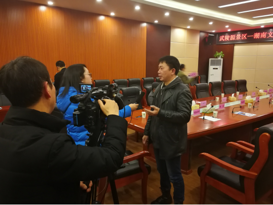 图3彭保发院长会后接受武陵源区新闻媒体采访