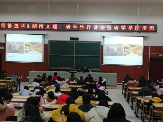 2019年3月2日至3月3日,由常德盈科公司和我院共同举办的研学旅行讲座暨研学导师培训在逸夫楼东附楼C107教室成功举行,学院院长彭保发教授、副院长王亚力教授、副院长吴云超博士以及2017级地理科学、旅游管理专业学生,2018级地理科学、旅游管理专业学生,不单旅游工作室全体实习生,学院气象天文科普志愿者小组全体同学,2018年中国高校地理科学展示大赛全体参赛队和全院相关教师300余人参加了本次培训。