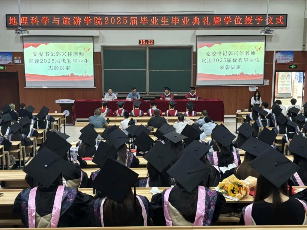 此次学位授予仪式不仅是毕业生们人生阶段的重要里程碑,更是对学术精神的传承与弘扬。相信地理科学与旅游学院2025届毕业生们将以此次仪式为起点,在各自的领域发光发热,书写属于自己的精彩篇章。