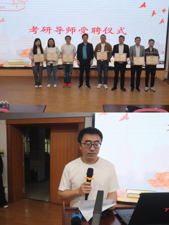 随后,学院党委书记郭兴体和副书记齐英分别为16位考研导师颁发聘书,各指导老师为21级优秀考研学子颁发“考研标兵”荣誉证书。考研导师陈万峰博士做代表发言,指出同学们要“明确目标,尽早行动”、“科学规划、分阶段备考”、“重视心理建设,拒绝孤军奋战”,为同学们指出了正确的考研备考道路,同时增强了考研学子们的信心。两位22级考研备考学生代表表示自己将全力以赴、坚定考研道路、脚踏实地、积极备考,在明年的考研之战中顺利上岸,再创佳绩。